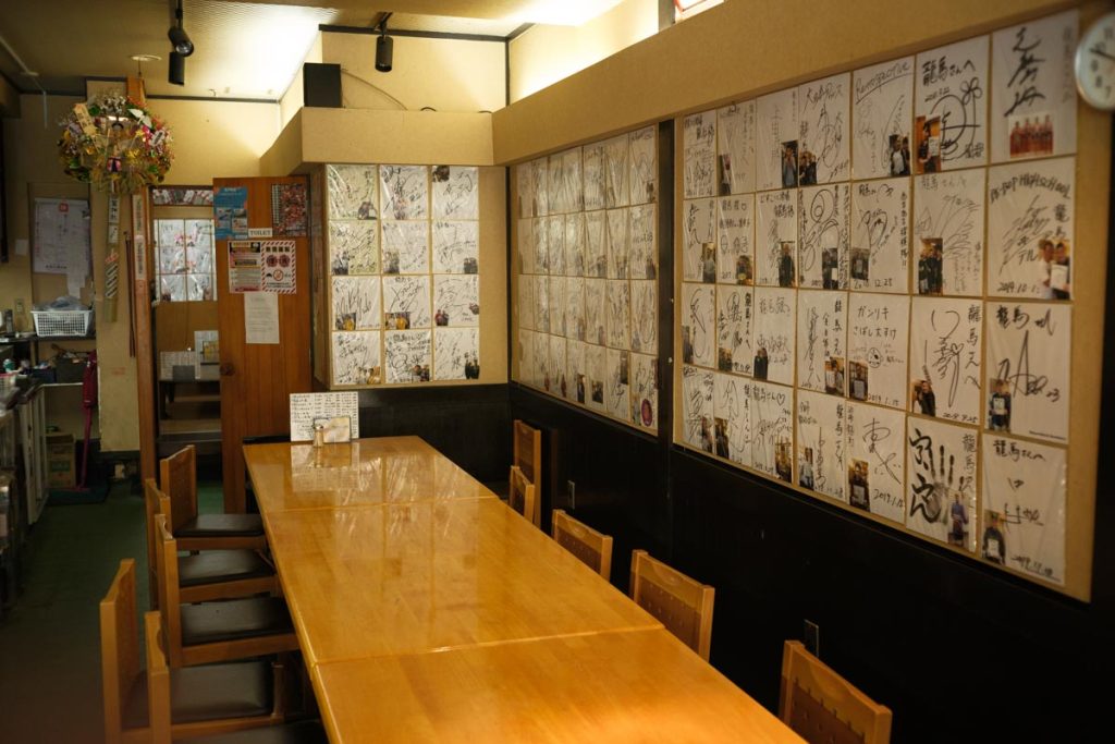 店内の壁には訪れた人々のサインが所狭しと並んでいる。