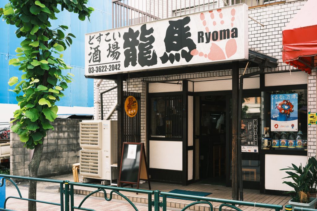 東京スカイツリーの最寄駅である押上駅から錦糸町方面へ徒歩 5 分。 立派な筆文字で「龍馬」と書かれた看板が目に入る。そこにあるのが「どすこい酒場 龍馬」だ。