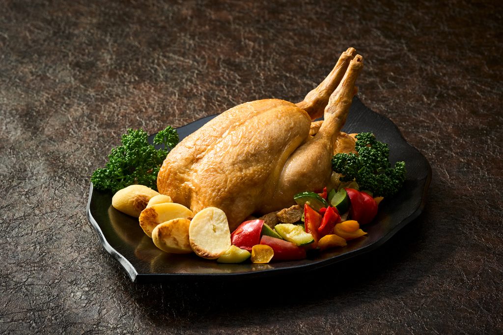 国産鶏をまるごと一羽使用し、香ばしいガーリックライスをたっぷり詰め込んだ